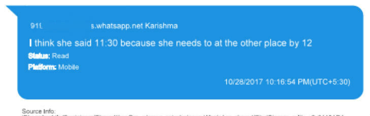 10:16 बजे: करिश्मा लिखती हैं, ‘मुझे लगता है कि उसने 11:30 कहा था, क्योंकि उसे 12 बजे किसी दूसरी जगह पर पहुंचना था।’